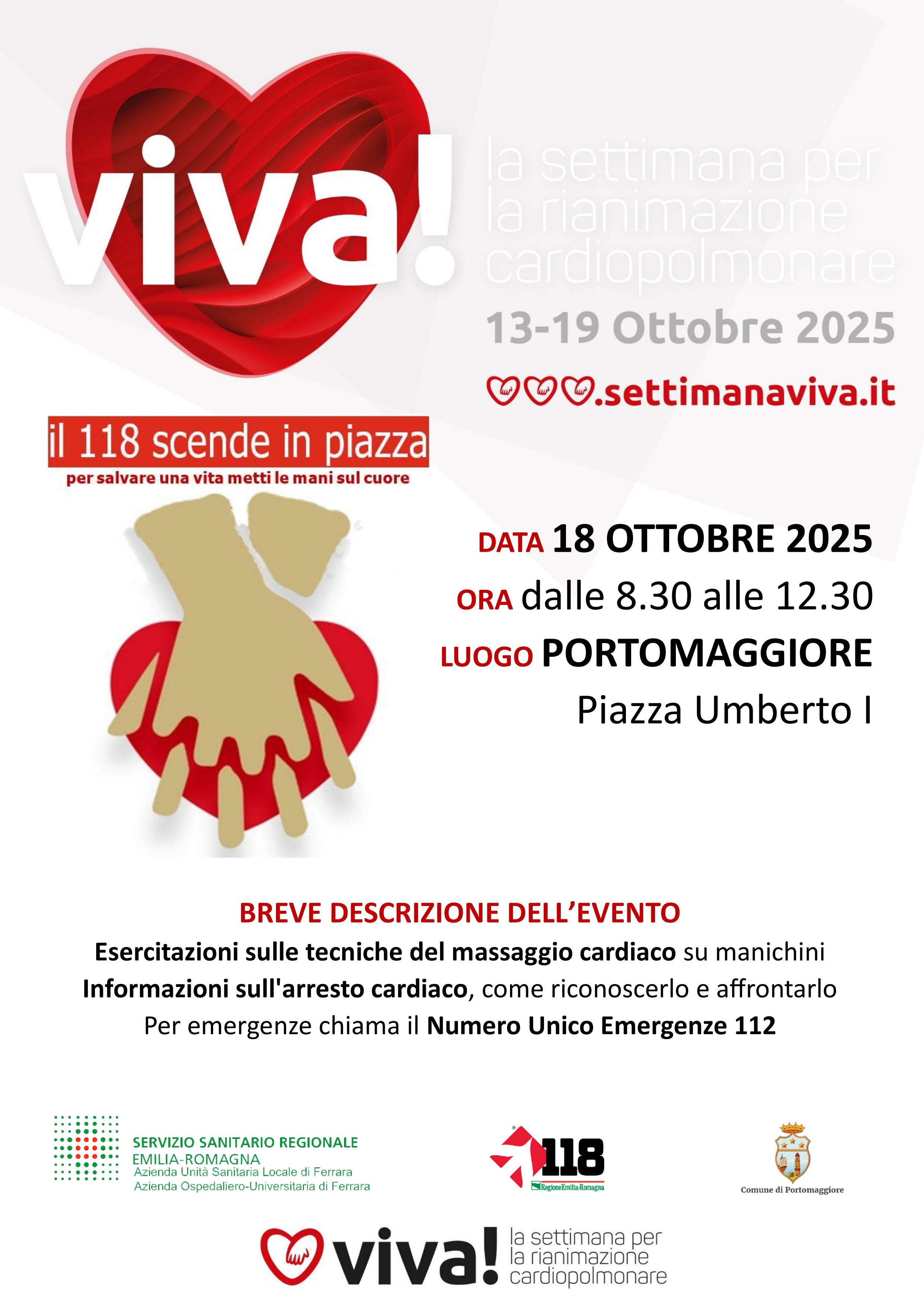 Gli operatori del 118 saranno a disposizione della cittadinanza per le esercitazioni sulle tecniche del massaggio cardiaco su manichini e per fornire informazioni sull'arresto cardiaco, come riconoscerlo e come affrontarlo.