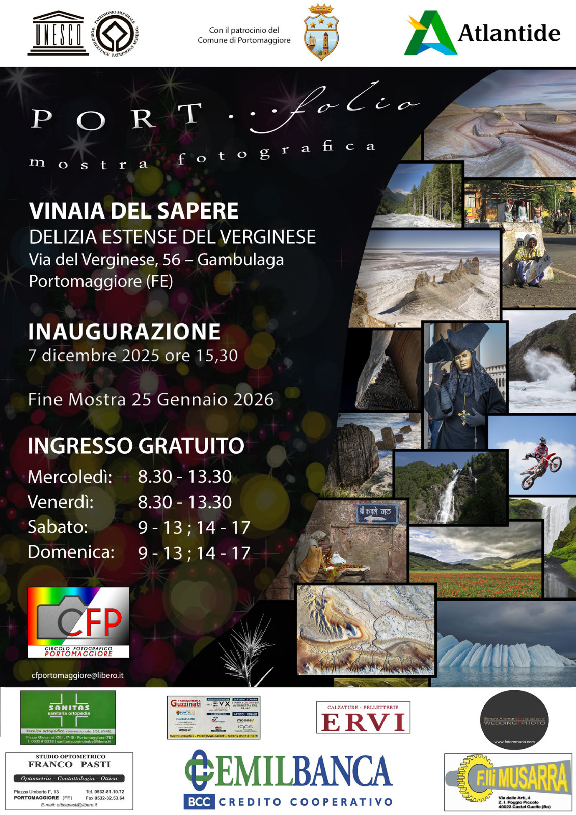 Torna nella cornice della Delizia del Verginese la mostra fotografica curata da Circolo Fotografico di Portomaggiore allestita nelle sale della Vinaia del Sapere: l’esposizione raccoglie gli scatti migliori dei membri del Circolo, accompagnando il visitatore in un viaggio tra terre lontane e vicine, dettagli naturalistici e grandiose architetture.